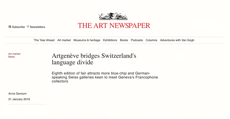 The Art Newspaper features Taymour Grahne's booth at artgeneve 2019